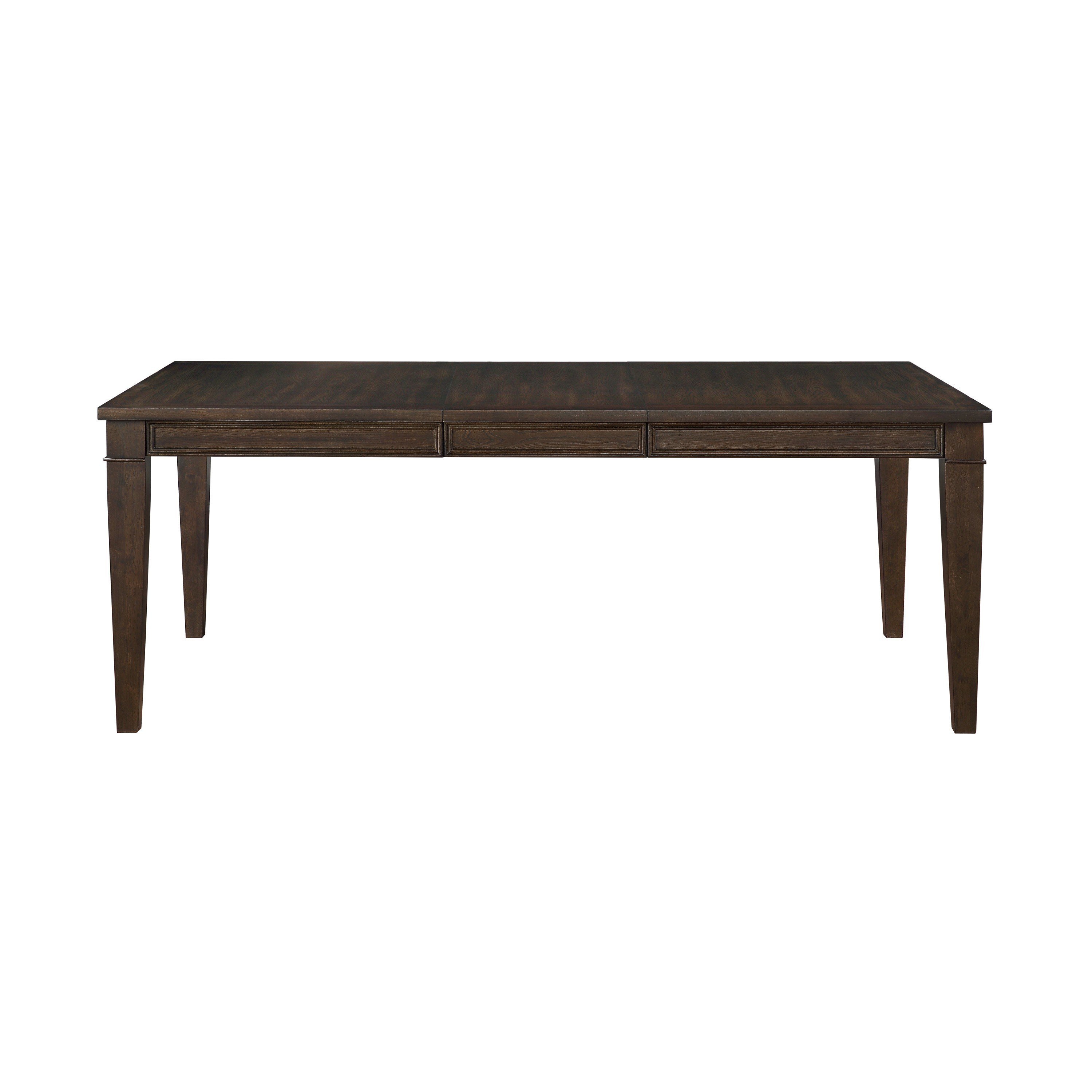 The look of Arts and Crafts styling is updated for the modern home in the Makah Collection. Classically framed chairs pair with the tapered leg table to create this casual dining look. A dark brown finish highlights the wood veneer allowing for the neutral tone of the seats to blend with little effort. Table apron and chairs feature framing that lends accent to the classic look. PRODUCT DIMENSIONS:DINING TABLE: 41.75" x 60"-70" x 30"H (18" x 1 Leaf)SIDE CHAIR: 19.25" x 24" x 40"HListing Includes: 5pc Dining Set (1 Dining Table and 4 Side Chairs) Only.Bench & Server: Not included.Simple Assembly Require.